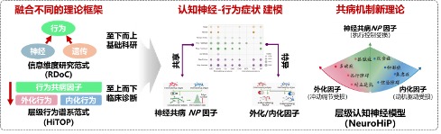精神疾病的高共病现象是当前精神医学面临的核心挑战之一。以分类诊断为中心的传统研究范式,难以解释不同精神障碍之间广泛存在的症状重叠与发展转化规律。近年来提出的分层精神病理学(如HiTOP)虽在临床症状的行为共病理论上取得进展(如行为共病因子P因子的提出),但其神经生物学基础长期缺乏系统性证明及刻画,尤其是在纵向发展维度。而与之相对的,从多维度神经生物信息学出发的研究范式(以美国NIH的RDoC系统为代表)则因为缺乏结构化的神经病理模型支撑,显著缺乏对于不同症状普遍关联这一精神疾病核心挑战的系统性解释。为此,当前的精神疾病研究急需将临床行为模型和神经生物机制在理论层面上进行整合。
